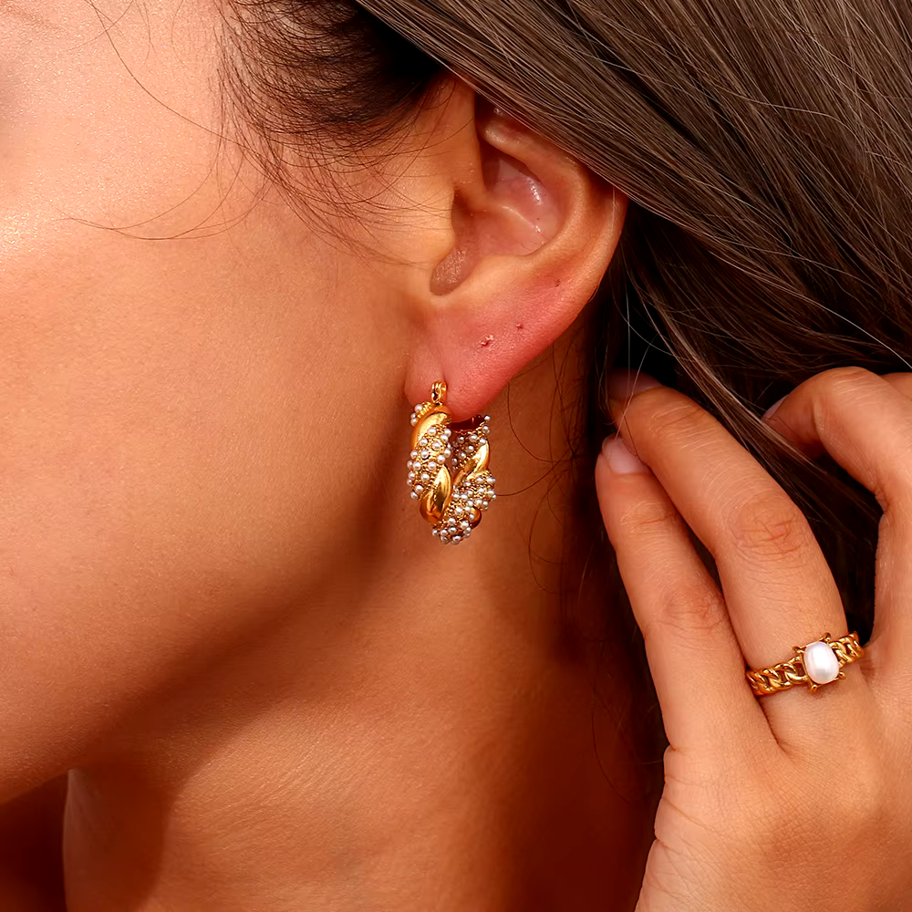 Material: Edelstahl, 18k Gold PVD-Beschichtung, natürliche Perlen