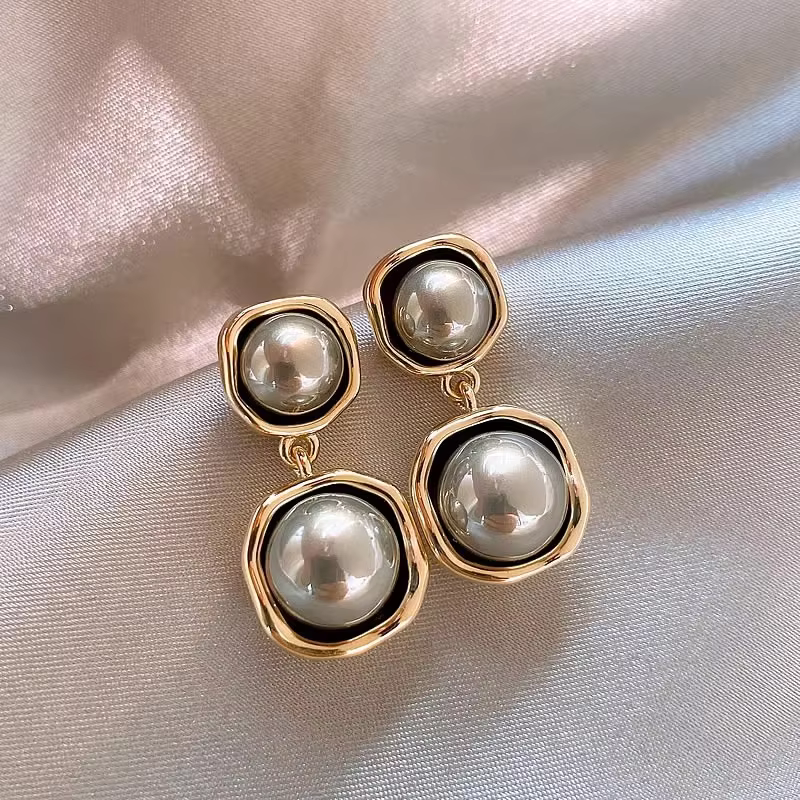 Sandra - Vintage elegante schwarze Perlenohrringe